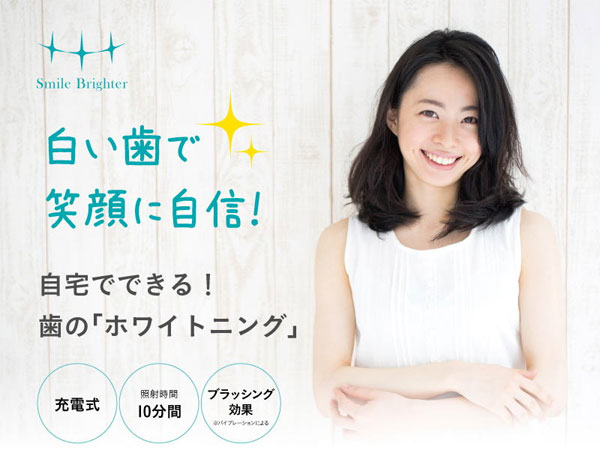 ■広告文責 株式会社ルイアンヌ 03-3263-5222■ スマイルブライター Smile Brighter たった10分で何処でも気軽に、歯のホワイトニングが出来る! 専用炭酸ジェル、LED光触媒、バイブレーション機能が汚れを落とします。