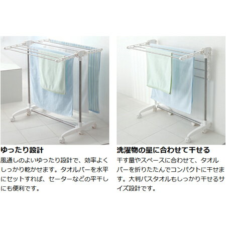 タオルバーを水平にセットすれば、セーターなどの平干しにも便利です。