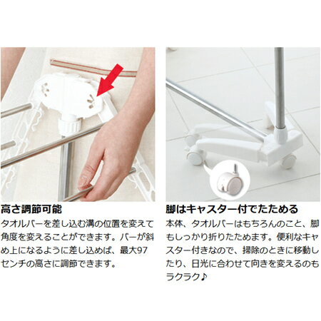 洗濯物の量に合わせて干せる干す量やスペースに合わせて、タオルバーを折りたたんでコンパクトに干せます。