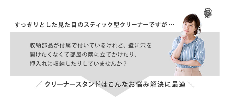 壁に穴を開けずにスティック型掃除機をスマートに収納。